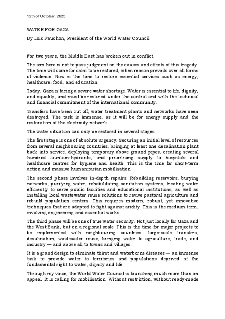 We are pleased to share with you the declaration delivered by Mr. Loïc Fauchon, President of the World Water Council, during the special session “Empowering Resilience through Strategic Water...