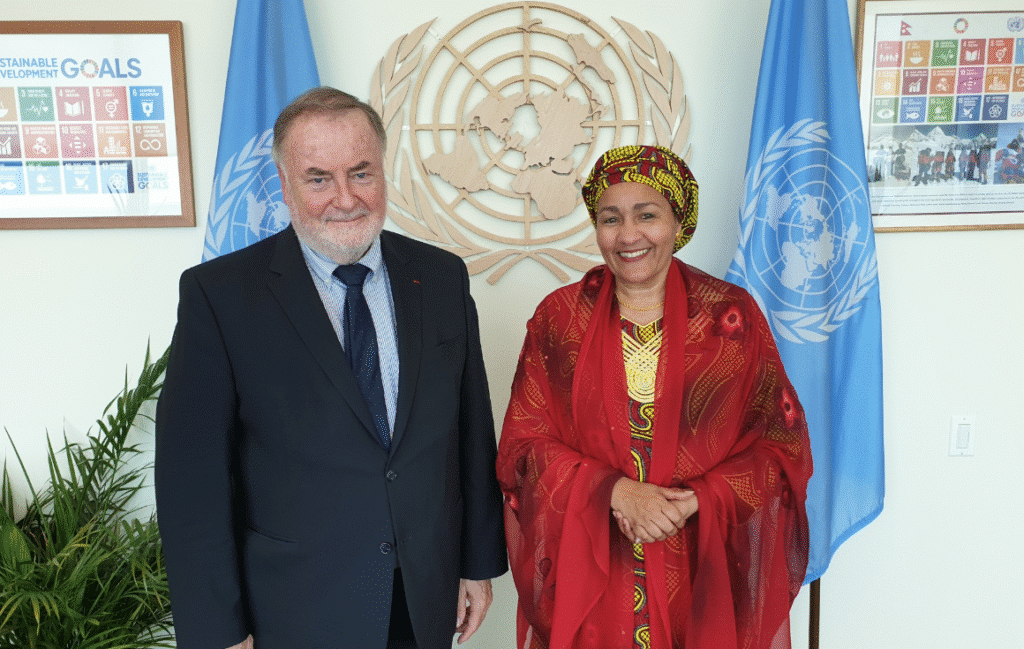 - The United Nations, for a meeting full of emotion with Mrs. Amina J. Mohammed, serving under the Secretary General, Mr. Guterres. The meeting is requested to mobilize UN agencies (UNICEF, UNDP …) today too absent on the subject of water.